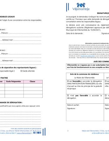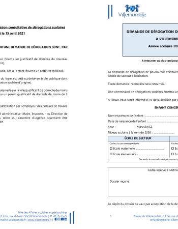 Vous résidez à Villemomble et vous souhaitez solliciter une demande de dérogation de secteur scolaire (autre école que celle relevant de votre secteur de résidence).
