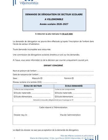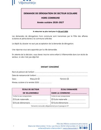 Formulaires de demandes de dérogations scolaires pour l'année 2026-2027 :