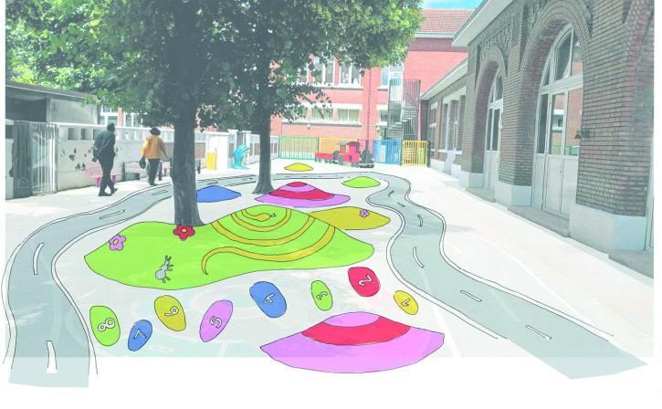 L’installation de ce dispositif, au-delà de l'aspect sécuritaire, permet de récolter l’eau de pluie qui se retrouve absorbée dans le sol et devient donc une source de rafraîchissement thermique pour les élèves.