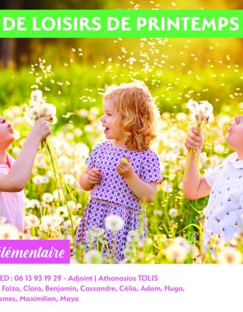 Retrouvez les plannings des accueils de loisirs pour les vacances de printemps 2026.