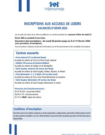 Retrouvez toutes les informations sur les modalités d'inscription aux accueils de loisirs pour les vacances d'hiver 2026.